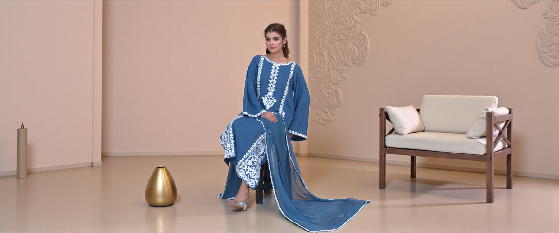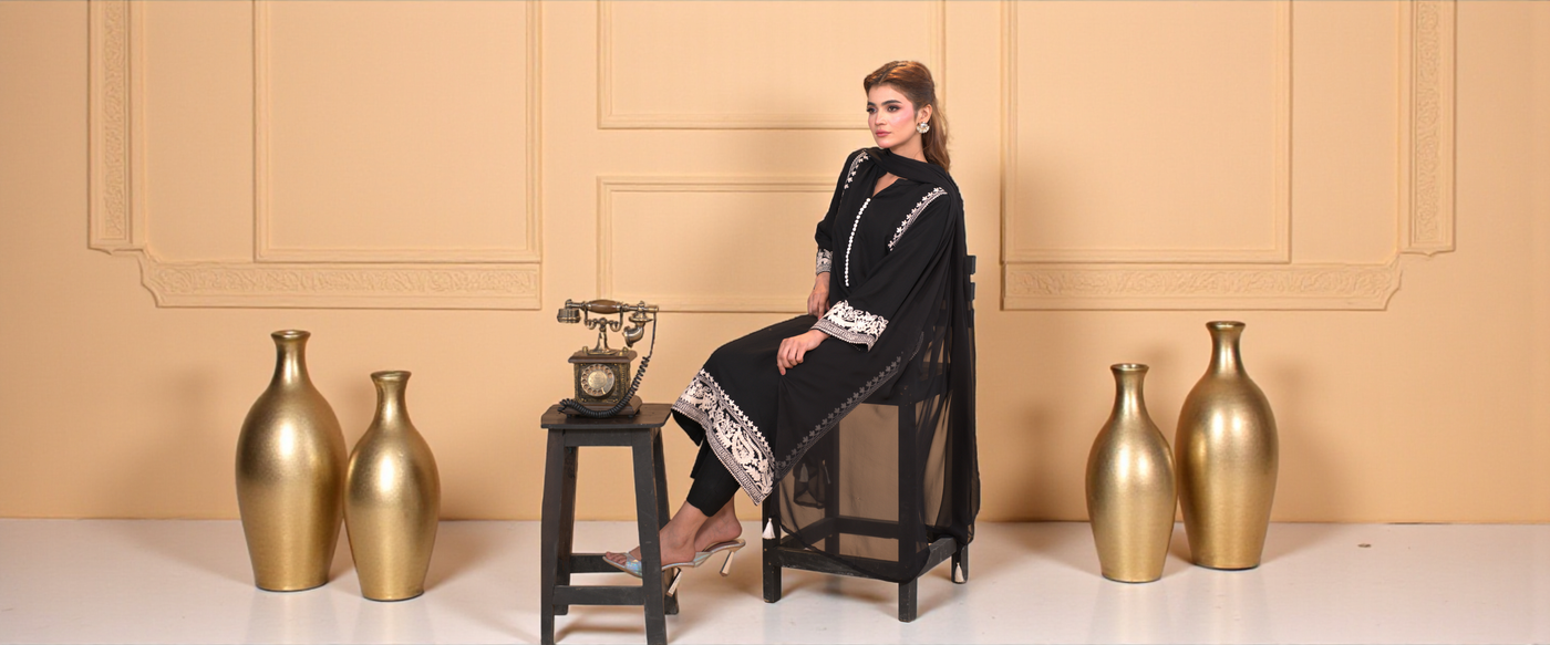 All pieces are crafted from premium-quality fabrics like crepe georgette, tropical karandi. Each fabric is carefully selected for its softness, flow, and comfort ensuring a graceful drape and refined finish.